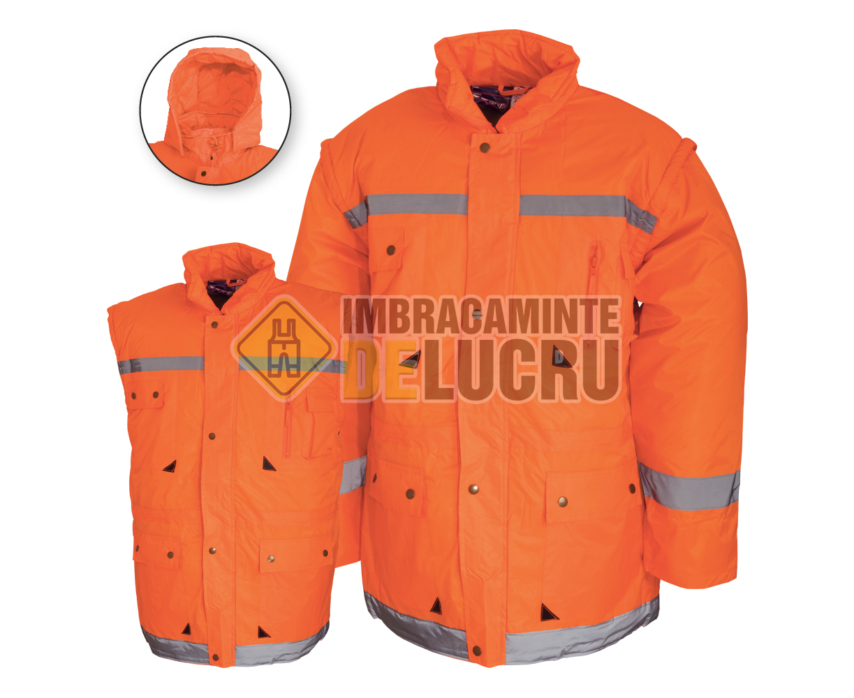 Jacheta cu benzi reflectorizante, cu protectie la frig si temperaturi scazute.